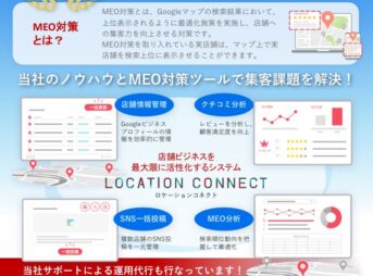 NEWS 2024.11.17 MEO対策代行事業の開始のお知らせ 2024.11.16 マウスウォッシュ事業移管のお知らせ 2024.06.10 格安SIMについて 2024.03.08 格安スマホの取次開始 2024.01.05 新年のご挨拶 取り扱い商品 2023/2/13 害虫駆除サービスについて ゴキブリ(チャバネゴキブリ)の生態について ①繁殖力が旺盛 1個の卵鞘から50頭の幼虫が産まれます。 特にメスの幼虫の150日間に及ぶ一生の中で、卵鞘を平均で8回産み落とします。よって、1頭のチャバネゴキブリから5ヶ月間で400頭前後の幼虫が産まれるという事実になります。 ②強い生命力 何でも食べる雑食性で、水させあれば生き延びる害虫です。 幼虫から50日間~で成虫になります。 害虫駆除サービス ゴキブリ駆除(戸建て) ゴキブリの隠れ場所や侵入経路を調査し、状況に応じて効果的な ... ReadMore 2021/4/21 次亜塩素酸ノンアルコール除菌水ZIACO『ジアコ』 身の回りにはさまざまな菌が潜んでいます。これらの菌には除菌が不可欠です。 さらに年間を通して私たちの生活を脅かす花粉や感染症の原因は空気中に潜んでいます。 そういった身の回りの除菌や空間除菌にはZIACOをご活用ください。 ZIACOの3つの特徴 1.優れた除菌力 ZIACOではこれまで一般的だったアルコール除菌では実現できなかった「除菌」と「脱臭」の両方が可能となりました。 ZIACOは次亜塩素酸ナトリウムという生食用魚介類の殺菌用やノロウィルス対策として厚生労働省が認めている成分を主な成 ... ReadMore 2025/11/19 【MEO対策】Googleマップ集客支援Location Connect(ロケーションコネクト) 当社のノウハウとMEO対策ツールで集客課題を解決! 店舗情報管理…Googleビジネスプロフィールの情報を効率的に管理 クチコミ分析…レビューを分析し、顧客満足度を向上 SNS一括投稿…複数店舗のSNS投稿を一元管理 MEO分析…検索順位動向を把握して最適化 当社サポートによる運用代行も行っています。 サービスご利用料金 導入店舗45000店舗以上のMEO対策サービスは2つのプランからお選びいただけます。 【プラン1】Googleビジネスプロフィール運用代行 当社のコンサルタン ... ReadMore 2022/9/9 マイセンス 今流行りの感染症対策の必須習慣として! 市販のマウスウォッシュの課題をマイセンスで解決 レンタルサービス価格(弊社オリジナル年間パック) ReadMore